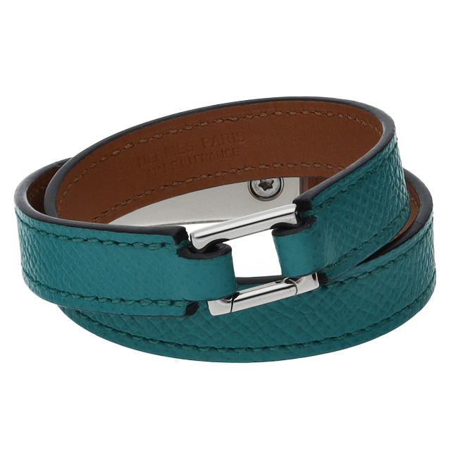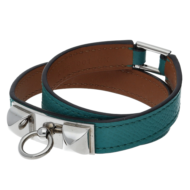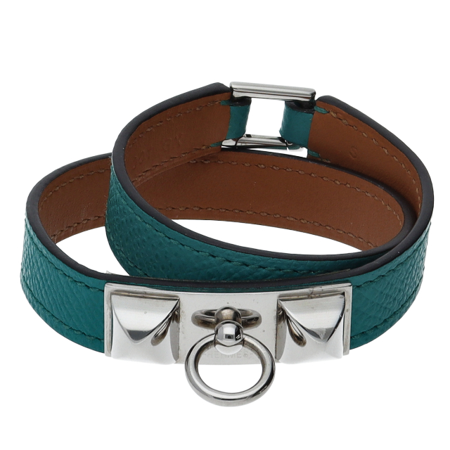 USED品。コリエドシアンのようなシルバーのスタッズが付いた2重巻きタイプのブレスレットで、エルメスの中でも男性・女性問わず人気のあるお品物です。重ね付けにも合います。