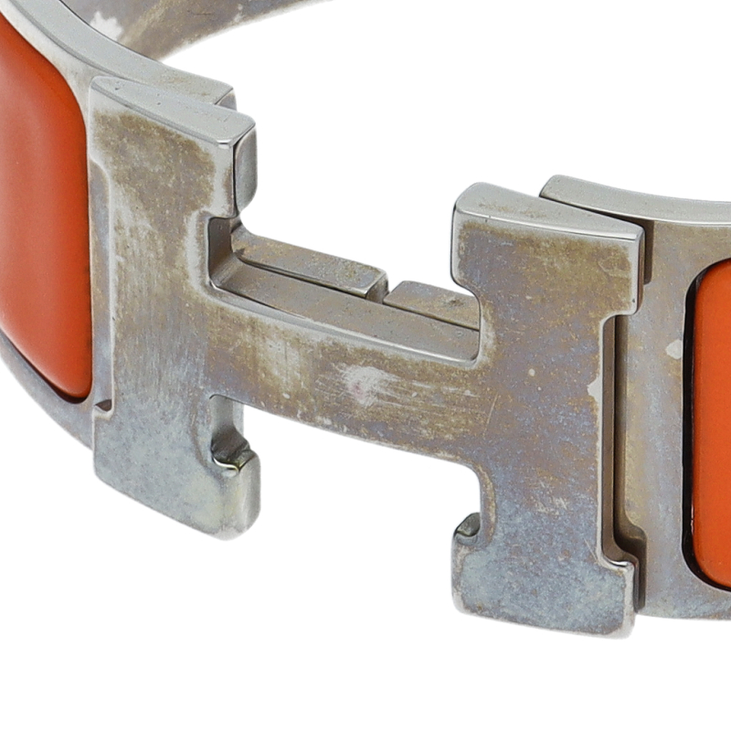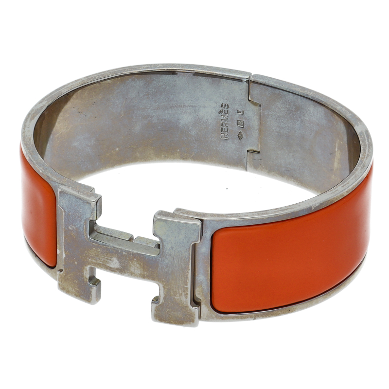 USED品。オレンジとシルバーの色合いが上品なブレスレットです。ファッションや場面を選ばずご着用いただけます。