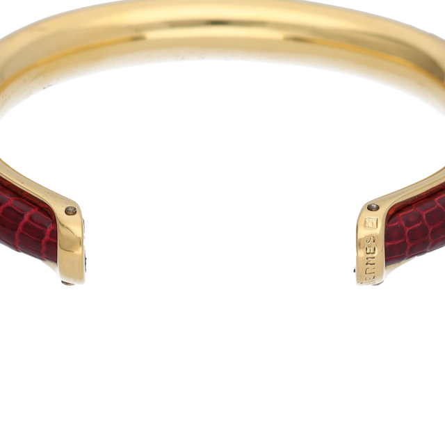 USED品。エルメスらしいレザーを使ったバングル。ファッション、場面を選ばずご着用頂けます。