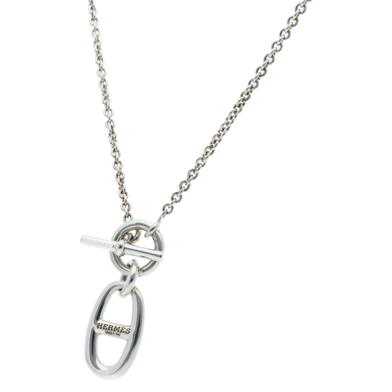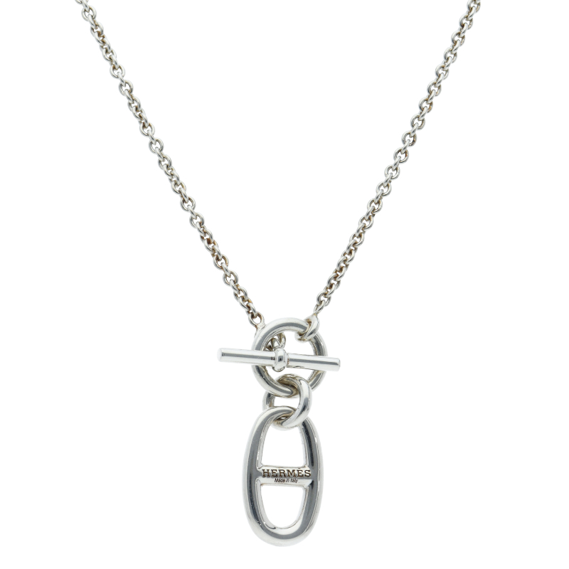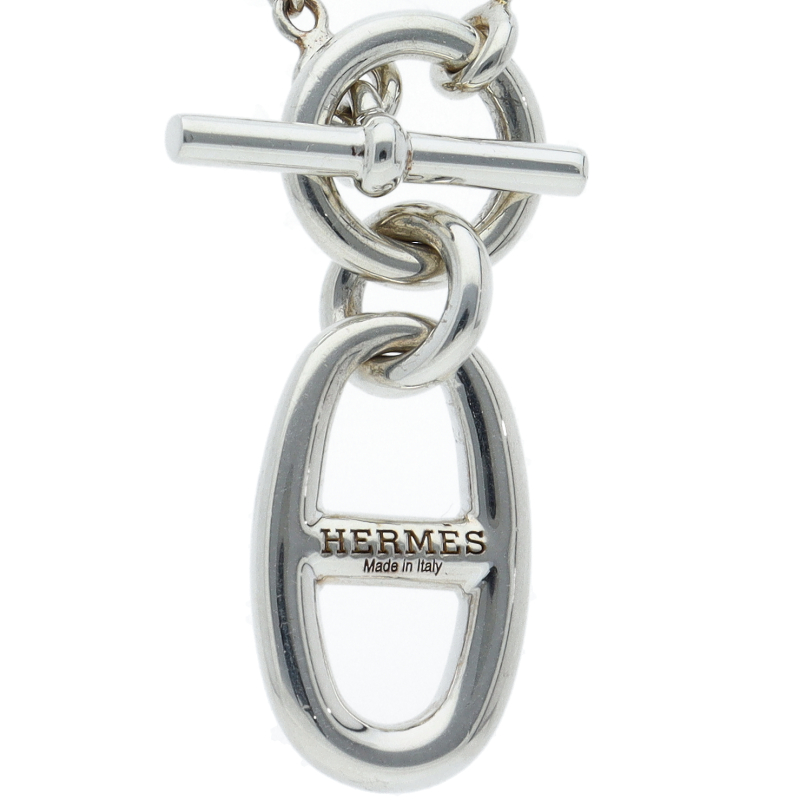 USED品。スターリングシルバー製。エルメスの頭文字「H」をモチーフにした楕円形の独特のデザインが魅力。普段使いのカジュアルなコーディネートに適したネックレスです。
