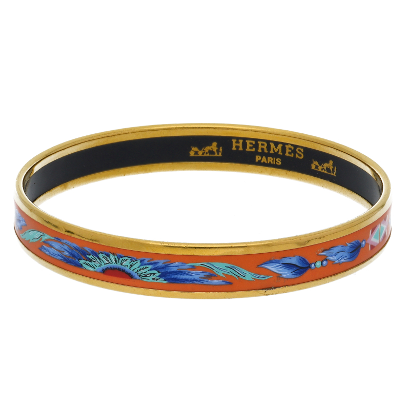 USED品。ゴールドとエルメスオレンジの色合いが上品なブレスレットです。ファッション、場面を選ばず、ご着用頂けます。