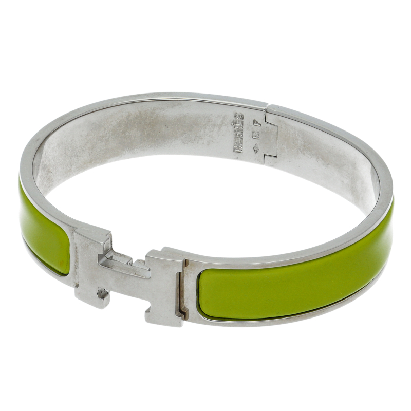 USED品。エルメスを象徴するHロゴが印象的なクリッククラックバングルです。ファッションを選ばずご使用いただけます。