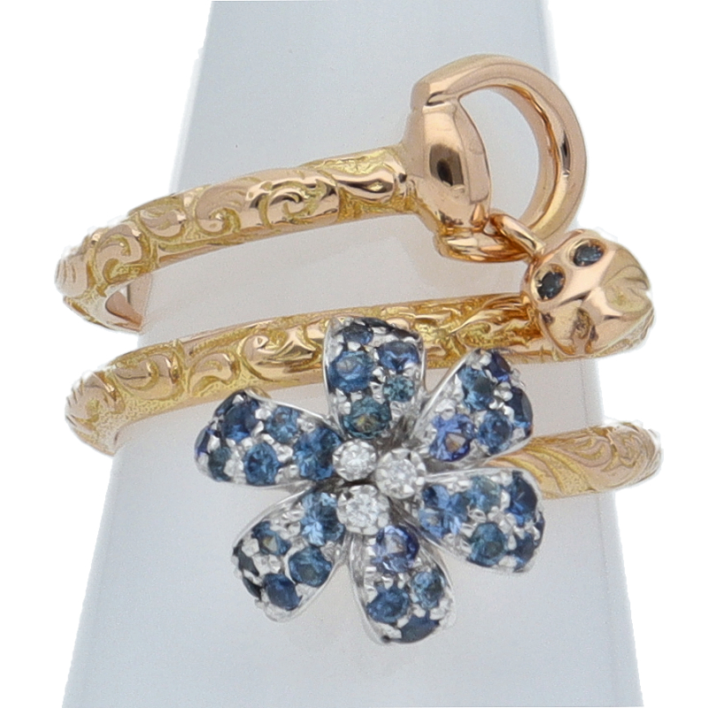 USED品。ピンクゴールド製。花とドクロがモチーフのリングです。可愛い中にも高級感を醸し出すお洒落なリングです。