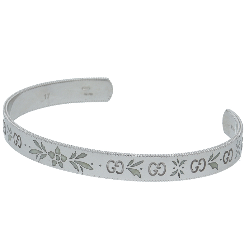 USED品。ホワイトゴールド製。カジュアルなホワイトゴールド素材に、ブランドアイコンモチーフ全体に施されたシンプルなアイテム。