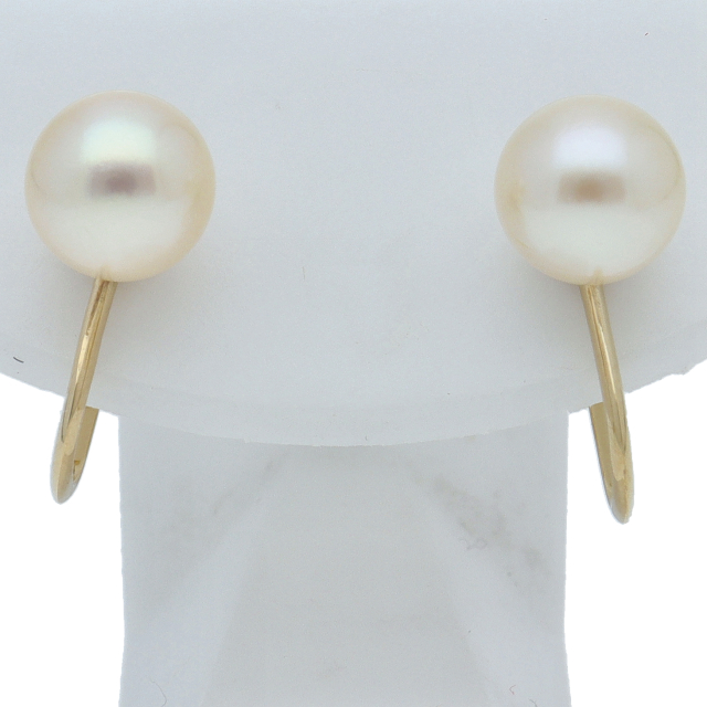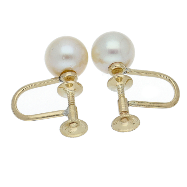 USED品。イエローゴールド製。上質なパールとシンプルなデザインのイヤリングです。フォーマルスタイルのポイントとしておすすめです。