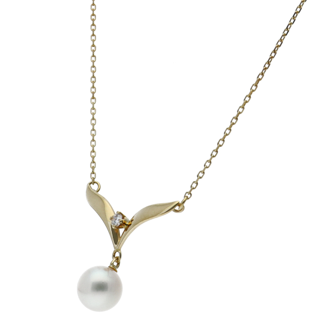 USED品。イエローゴールド製。海の底に眠る貝から生まれる白く輝く真珠は、女性の肌を引き立てる最高の海の宝石であり、今も昔も日本女性のフォーマルシーンに欠かせない世界最高級の真珠ブランドとなっています。