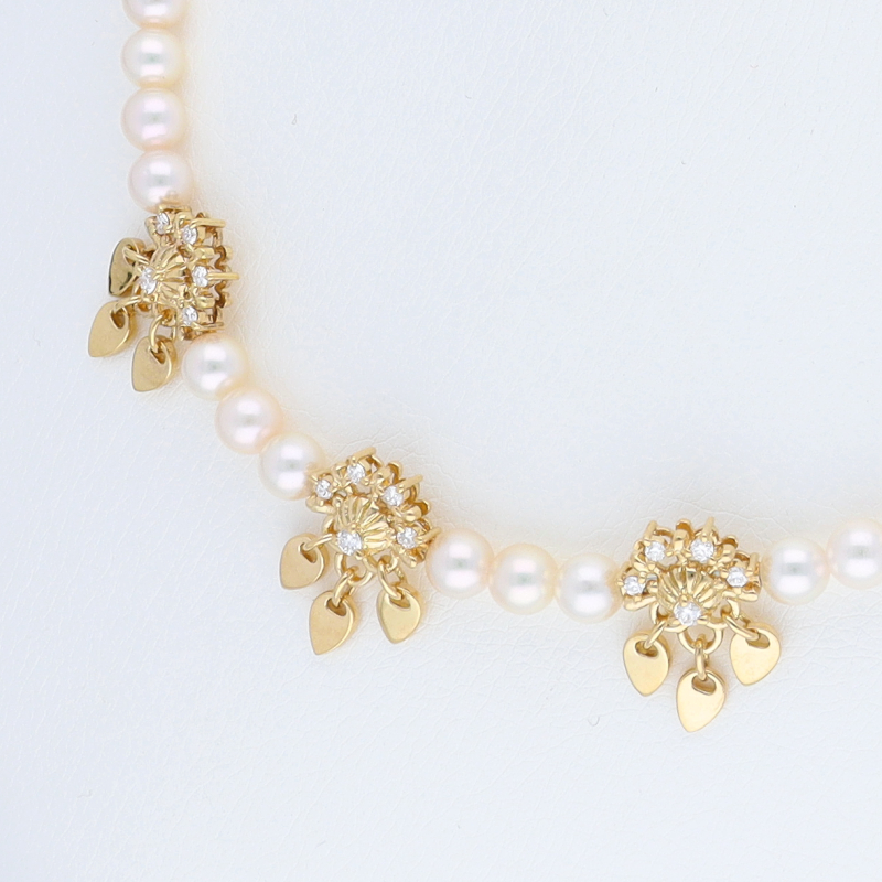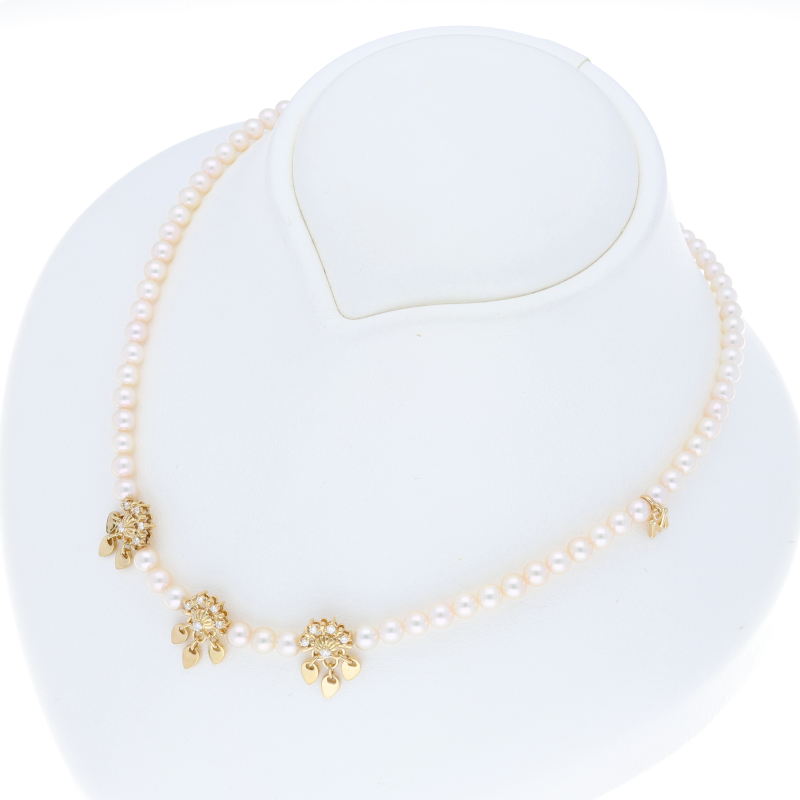 USED品。イエローゴールド製。海の底に眠る貝から生まれる白く輝く真珠は、女性の肌を引き立てる最高の海の宝石であり、今も昔も日本女性のフォーマルシーンに欠かせない世界最高級の真珠ブランドとなっています。