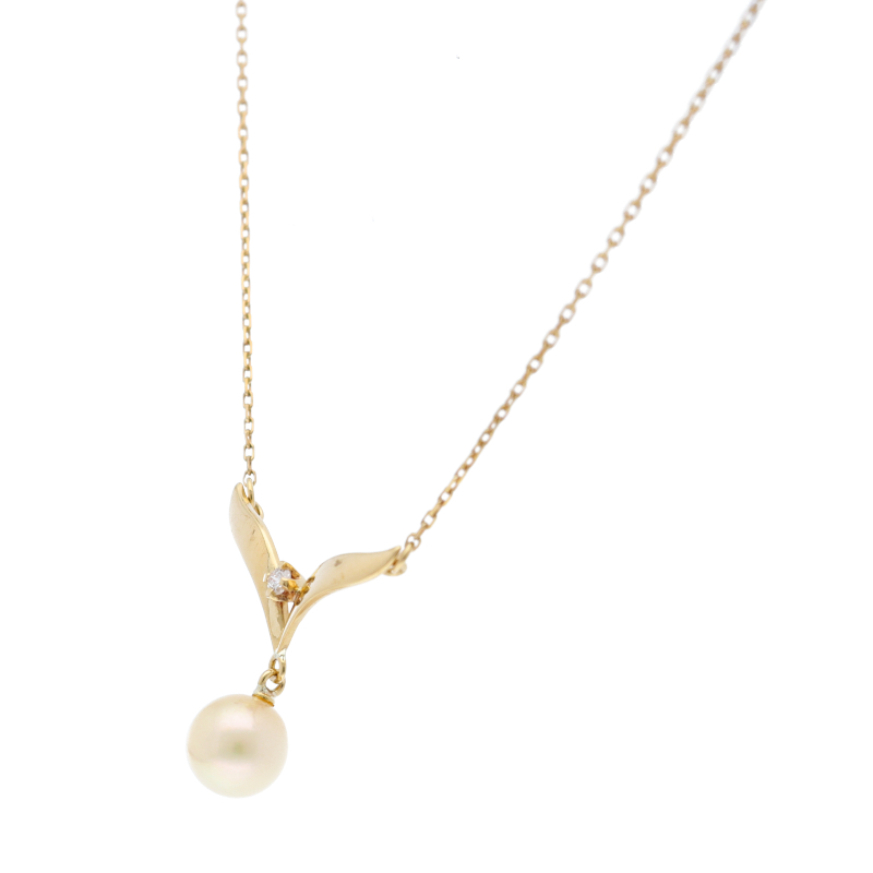 USED品。イエローゴールド製。海の底に眠る貝から生まれる白く輝く真珠は、女性の肌を引き立てる最高の海の宝石であり、今も昔も日本女性のフォーマルシーンに欠かせない世界最高級の真珠ブランドとなっています。