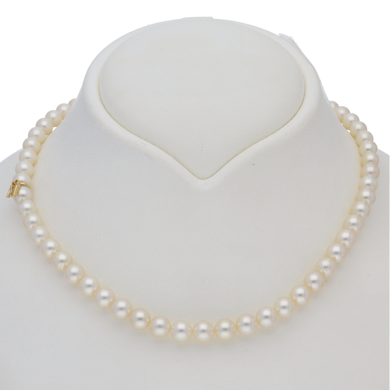 USED品。イエローゴールド/ホワイトゴールド製。海の底に眠る貝から生まれる白く輝く真珠は、女性の肌を引き立てる最高の海の宝石であり、今も昔も日本女性のフォーマルシーンに欠かせない世界最高級の真珠ブランドとなっています。