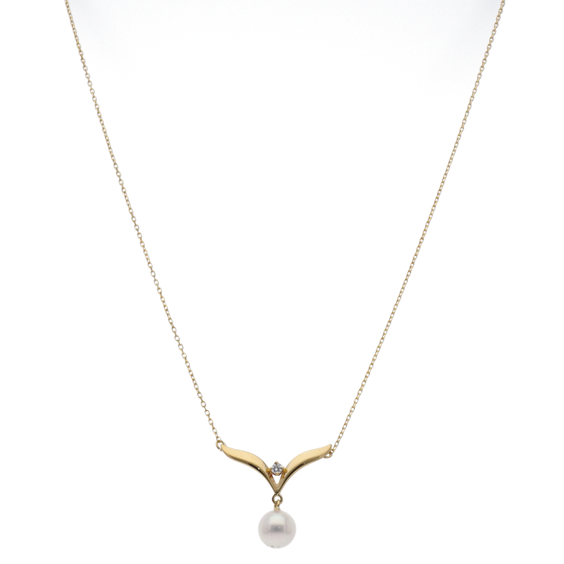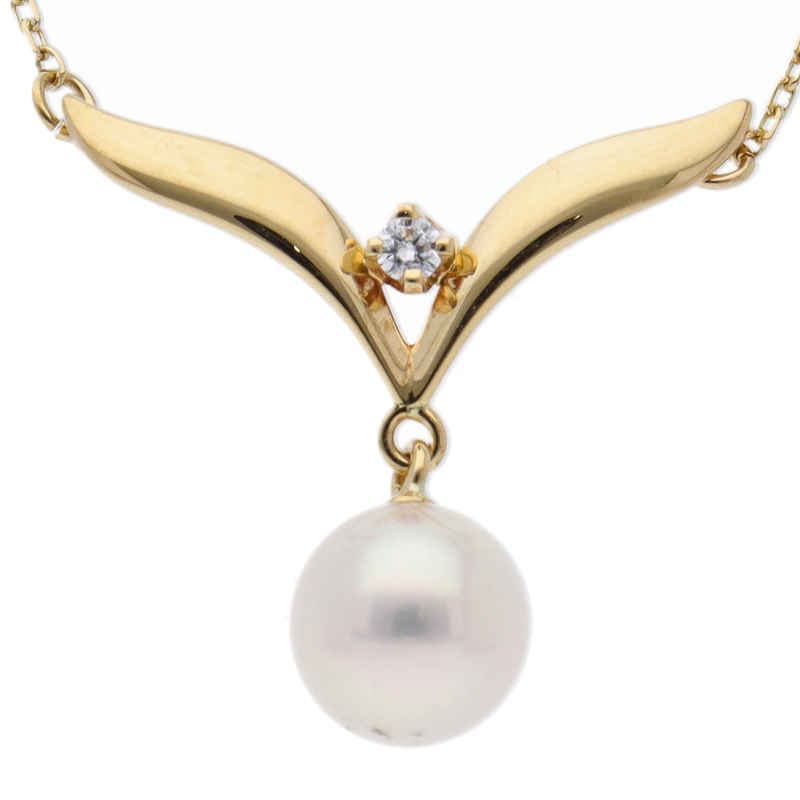 USED品。イエローゴールド製。海の底に眠る貝から生まれる白く輝く真珠は、女性の肌を引き立てる最高の海の宝石であり、今も昔も日本女性のフォーマルシーンに欠かせない世界最高級の真珠ブランドとなっています。
