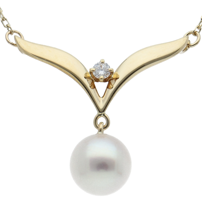 USED品。イエローゴールド製。海の底に眠る貝から生まれる白く輝く真珠は、女性の肌を引き立てる最高の海の宝石であり、今も昔も日本女性のフォーマルシーンに欠かせない世界最高級の真珠ブランドとなっています。