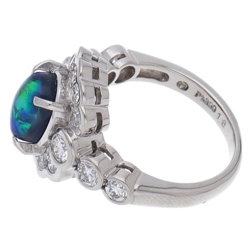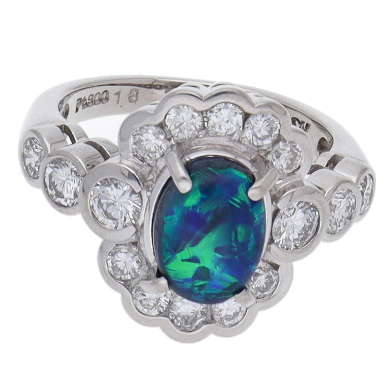 USED品。プラチナ製。オパールとダイヤモンドが入ったリングとなります。石の輝きも良く、素敵な一品となります。