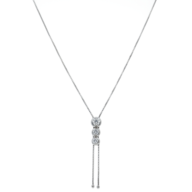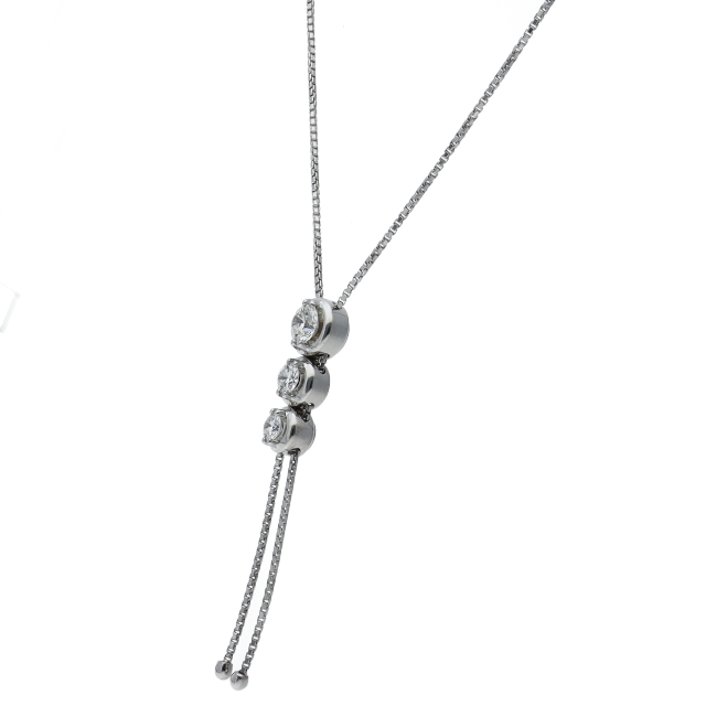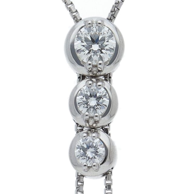 USED品。ホワイトゴールド製。ダイヤ3石が輝きながら優雅に揺れるトリロジーデザイン。ダイヤ3石の位置を変えられるのでカジュアルにもフォーマルにも使えるのでオススメです。