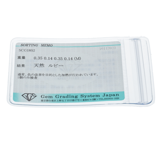 ルビー:0.35ct ダイヤ:0.14ct ルビー:0.35ct ダイヤ:0.14ct |