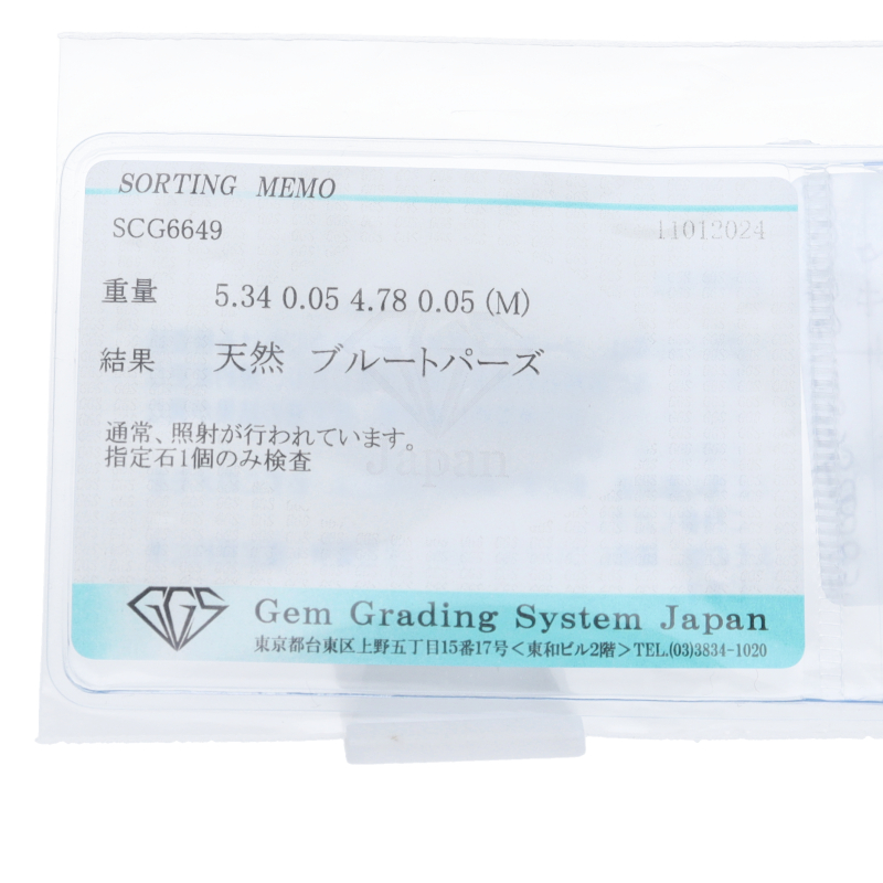 | 特徴 | ブルートパーズ:5.34ct/4.78ct ダイヤ:0.05ct/0.05ct |