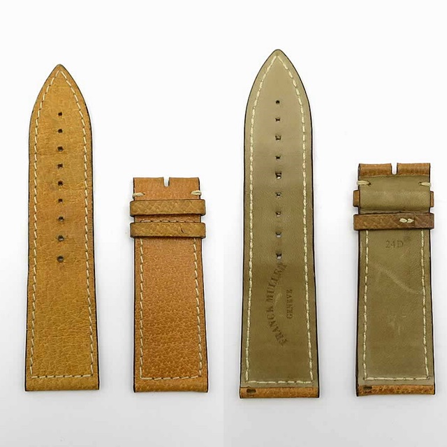 フランクミュラーのUSED品のロングアイランド用の革バンドです。サイズは(本体側)24mm(尾錠側)22mmサイズです。
