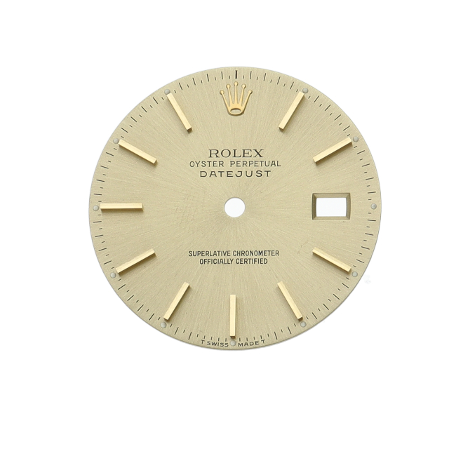 ロレックス、デイトジャスト用の文字盤です。針はインダイヤ用の3本のみとなっていますのでご了承くださいませ。