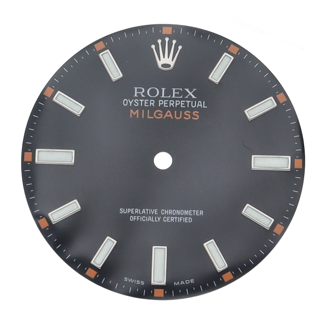 ロレックス、ミルガウス用の文字盤・針セットです。黒文字盤。