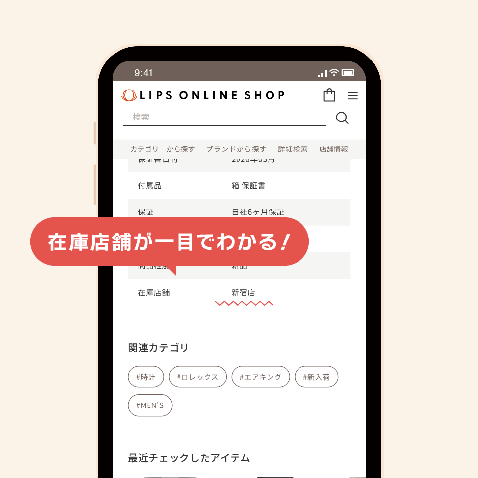 リニューアルにより、商品詳細ページで在庫のある店舗を直接確認できるようになりました。