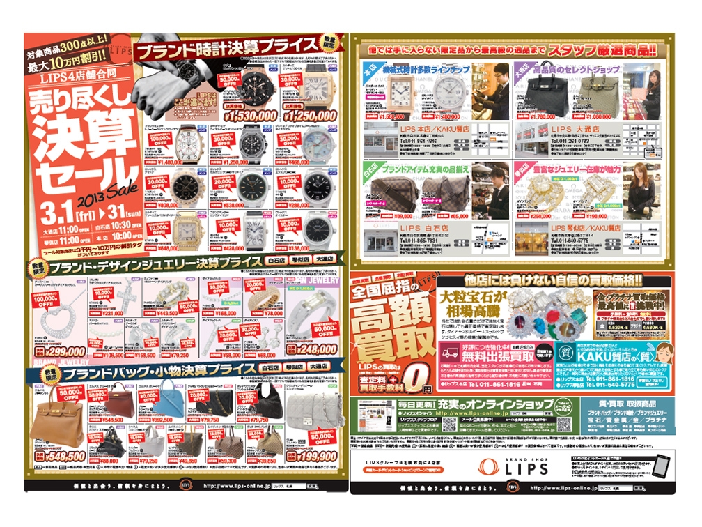 2013年2月28日北海道新聞、読売新聞折り込みチラシ セール期間:2013年3月1日(金)~3月31日(日)
