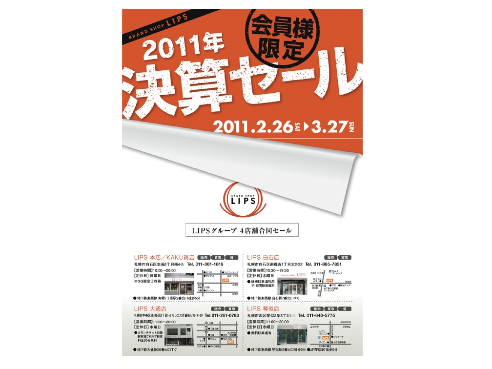 リップス大通店限定 セール期間:2012年2月6日(月)~2月12日(日)