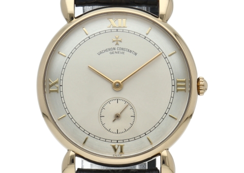 ヴァシュロン・コンスタンタン 92084/000J-4は18Kイエローゴールドの手巻きドレスウォッチ。33mmのスリムケースにティアドロップラグ、シルバー文字盤が上品でフォーマルに最適です。