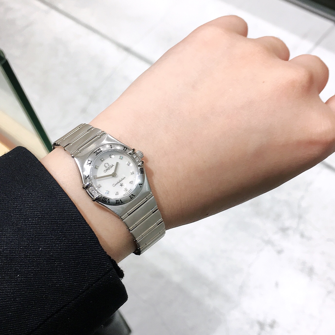 ホワイトシェル文字盤に12ポイントダイヤが配され高級感が溢れています。